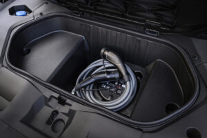 Der Kofferraum fasst 520 Liter und kann bei umgelegten asymmetrisch geteilten hinteren Lehnen auf bis zu 1.750 Liter vergrößert werden. Kleiner Nachteil: die Ladefläche ist dann nicht komplett eben. Zusätzlichen Stauraum gibt es unter der Fronthaube. Ein mit Deckel verschließbares Fach fasst 58 Liter. Da passt dann auch mehr rein als lediglich ein Ladekabel.