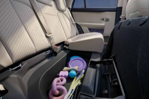 Besonders kreative Ideen aber haben die Entwickler in Sachen Praxistauglichkeit in die Tat umgesetzt. Schon der Innenraum bietet aufgrund des 2,62 Meter langen Radstands wirklich viel Platz auch auf der Rückbank. Dazu kommt ein Ladeabteil, das von 404 bis auf 1.253 Liter variabel erweitert werden kann. Dazu tragen die geteilt umlegbaren hinteren Lehnen bei. Doch nicht nur das. Die Sitzflächen lassen sich sowohl hinten als auch beim Beifahrerplatz aufklappen. Darunter liegen jeweils Fächer, in denen sich Kleinkram unterbringen lässt. Außerdem bietet der Firefly einen Frunk unter der Fronthaube mit einem Volumen von satten 92 Litern. Sogar an einen Ablauf haben die Designer gedacht, falls nasse Kleidung oder Schuhe nach einem regnerischen Ausflug dort verstaut werden soll.