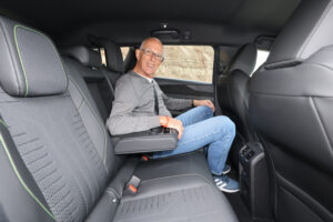 Wer häufig derart rasant unterwegs ist, der muss halt schnell wieder an eine Ladestation, um frische Energie aufzunehmen. Dann nämlich rücken die WLTP-Verbrauchswerte von 15,6 kWh für die Limousine beziehungsweise 15,3 kWh für den SW in ganz weite Ferne. Bei zurückhaltend eingesetztem rechten Fuß auf kurvenreicher Straße mit vielen Steigungs- und entsprechenden Bergabpassagen sowie Temperaturen um 16 Grad pendelt sich der Verbrauch im SW bei 19,2 kWh ein. Die Stärke der Rekuperation ist über Schaltwippen am Lenkrad in drei Stufen verstellbar. So lässt sich das Verzögern in der Stadt fast ohne Bremsen regulieren. Lediglich um komplett in den Stillstand zu kommen, muss aufs Bremspedal getreten werden.