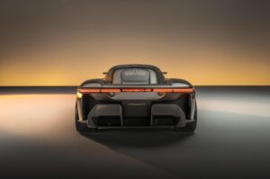Eine durchgehende, scheinbar schwebende Leuchteineinheit prägt das Heck des Mission X. Besonderheit ist hier ein transparenter, leuchtender Porsche-Schriftzug. Dazu hat das Designteam schon beim Konzept auf Aerodynamik geachtet. Mauer aber weiß, das gerade in dieser Hinsicht noch viel Arbeit wartet, bevor der Wagen in Serie geht. „Da ist noch eine Menge an Feinschliff notwendig, um die ausgegebenen Ziele mit Blick auf die Performance zu erreichen.“