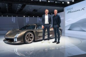 Vorgestellt wurde die Konzept-Studie anlässlich der Feierlichkeiten zu 75 Jahren Porsche-Sportwagen. „Der Porsche Mission X ist ein Technologie-Leuchtturm für den Sportwagen der Zukunft. Damit knüpft er an Sportwagen-Ikonen früherer Dekaden an. Die Porsche Modelle 859, Carrera GT und 918 Spyder waren Meilensteine in der Welt der Supersportwagen, sind damit ideelle Vorgänger des Mission X. Der wird dann entscheidende Impulse für die Weiterentwicklung künftiger Fahrzeugkonzepte geben“, so der Vorstandsvorsitzende. Nur weil Porsche sich immer wieder verändert habe, sei Porsche stets Porsche geblieben.